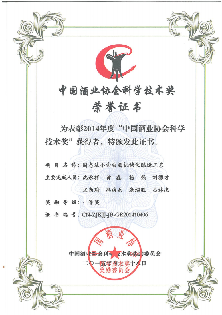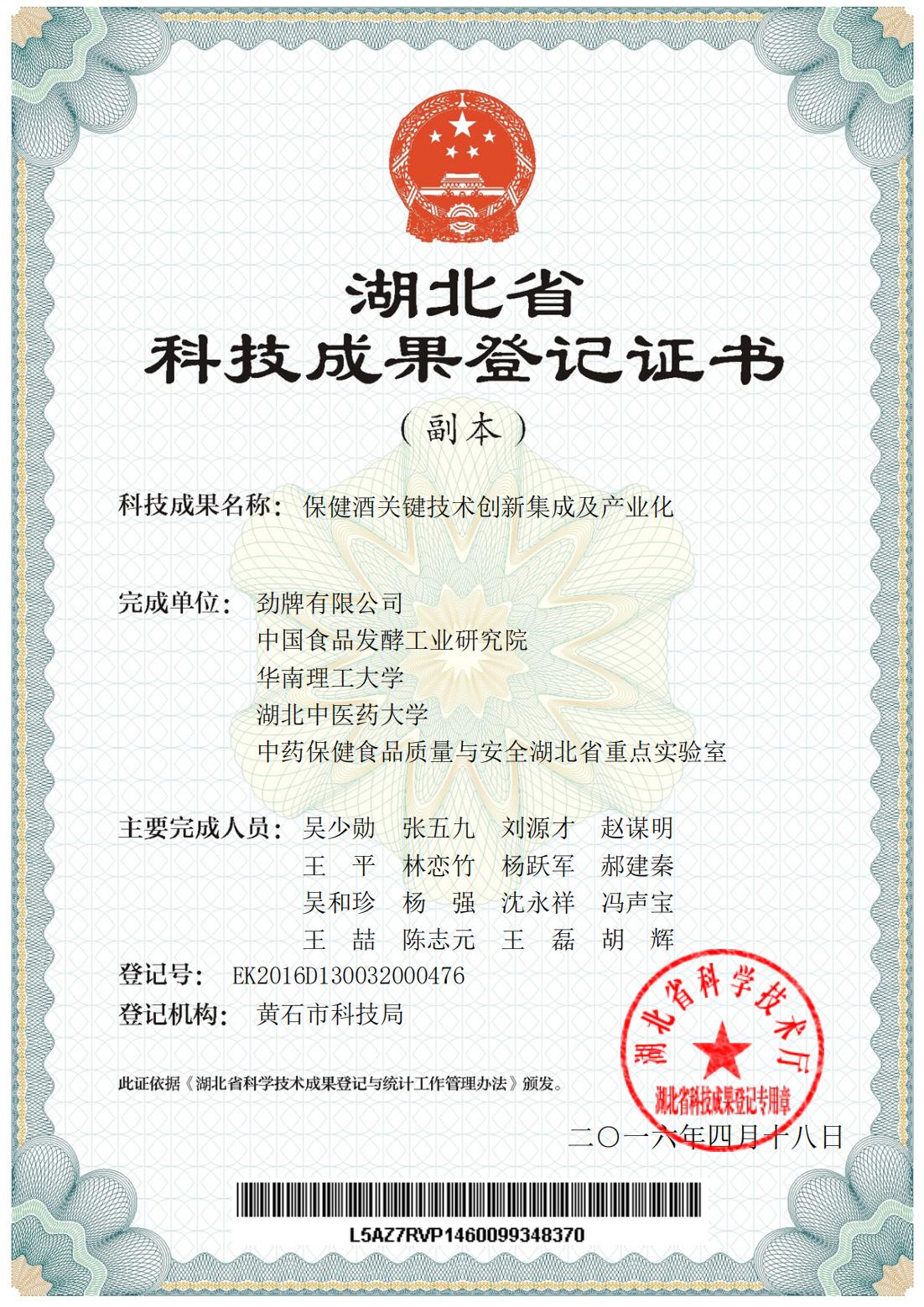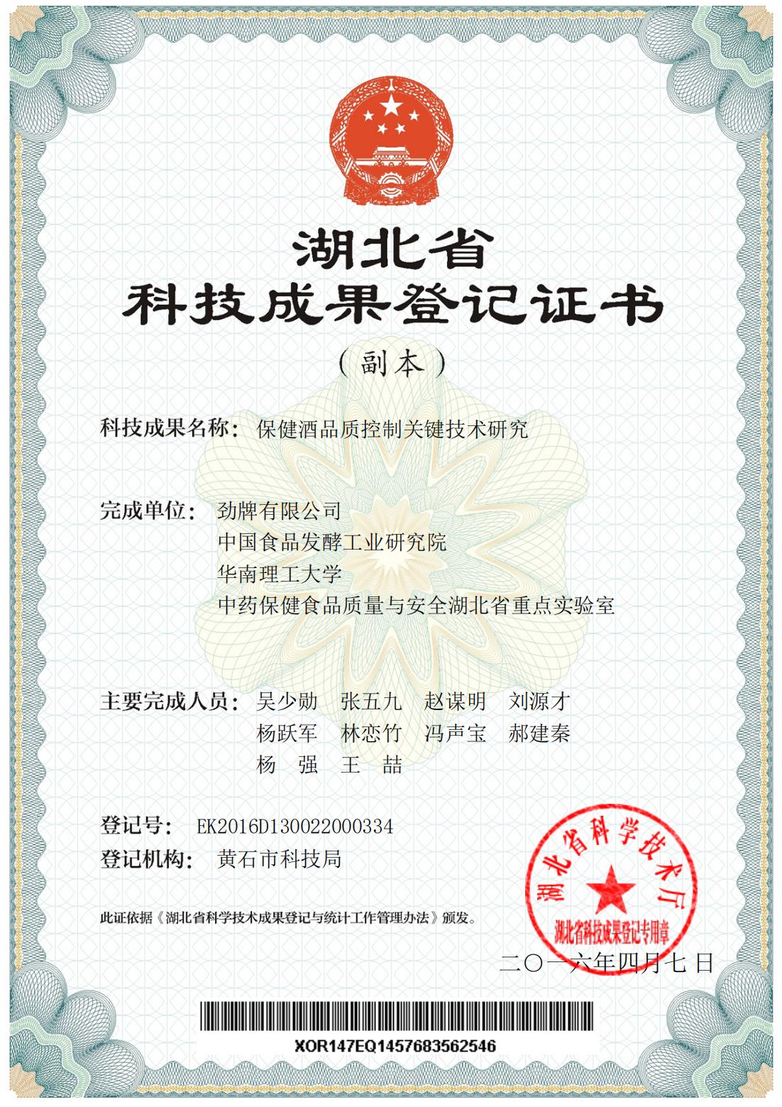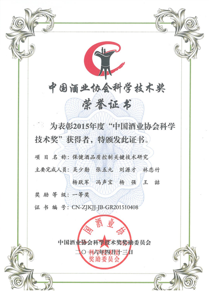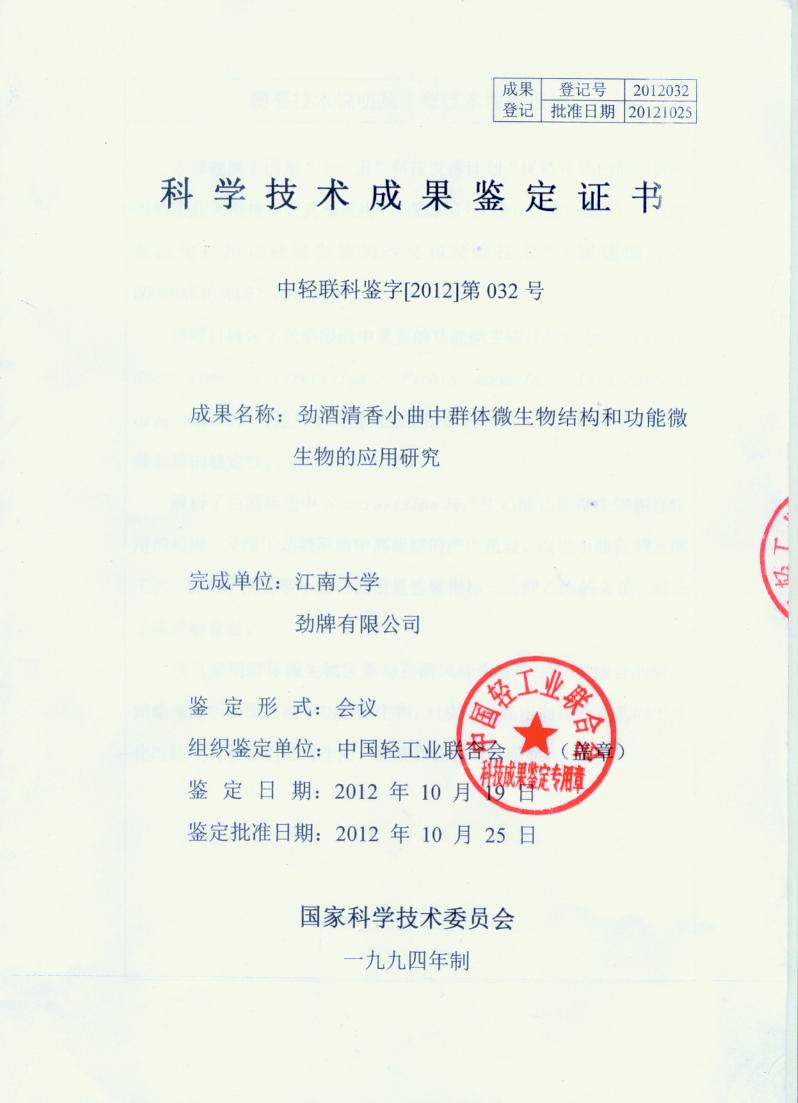 近年來,公司圍繞保健酒、草本白酒和中草藥新產品研發(fā)、產品改進和基礎應用技術,在中藥數字化提取、小曲酒釀造新工藝、中藥指紋圖譜等核心技術方面擁有自主知識產權,通過行業(yè)協會等鑒定機構技術評估22項,其中15項成果鑒定為“國際領先”水平,7項成果鑒定為“國際先進”水平。
