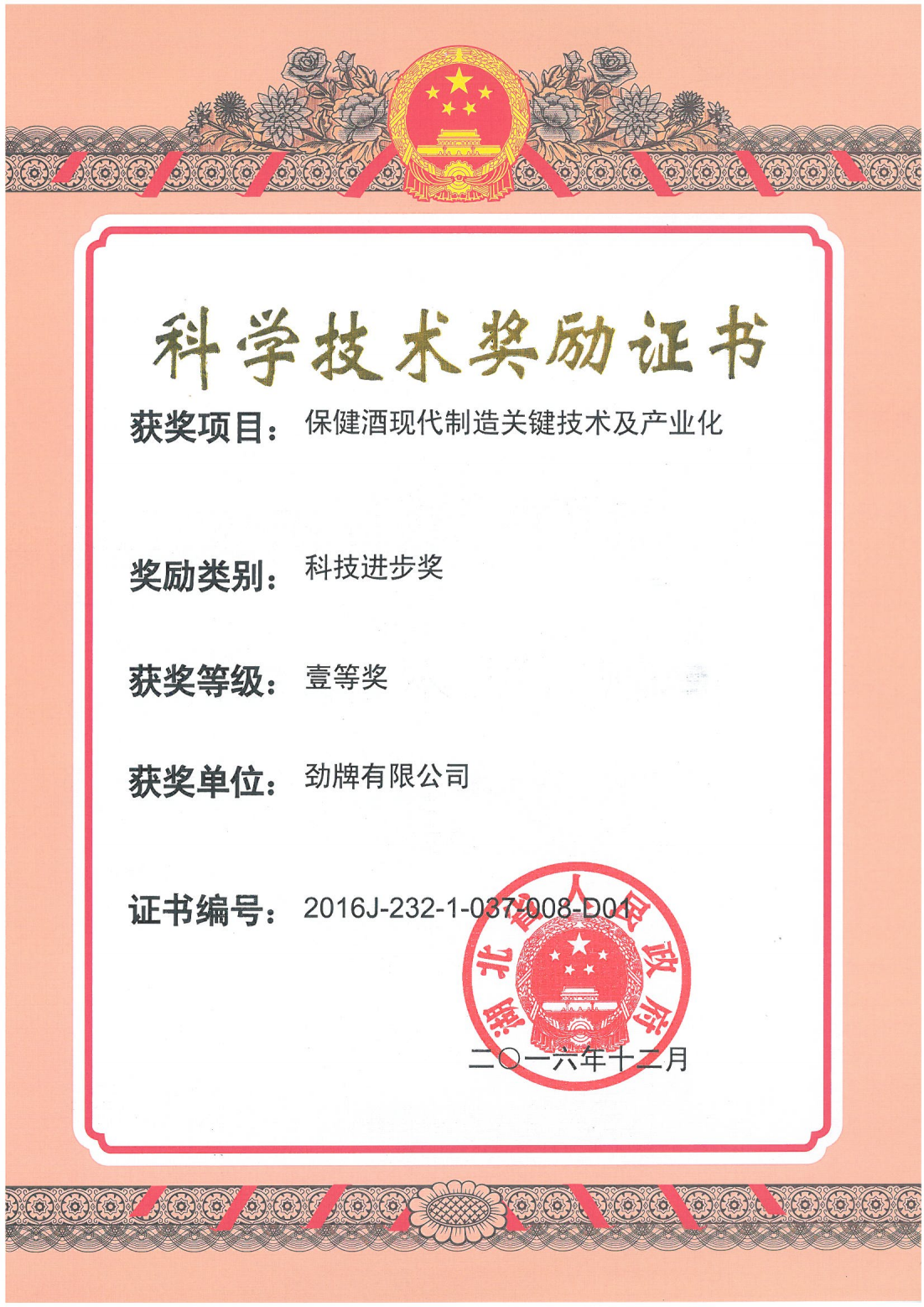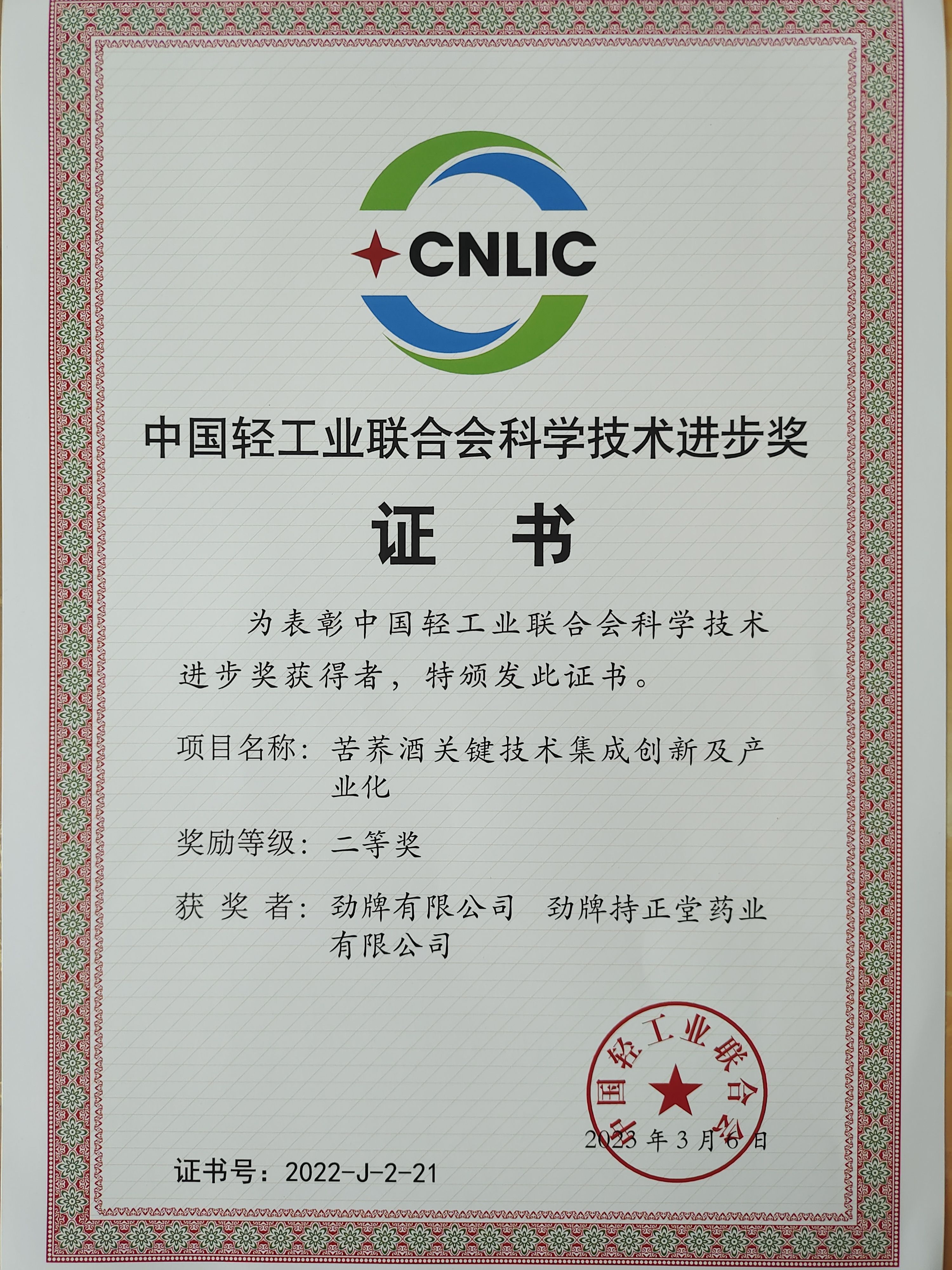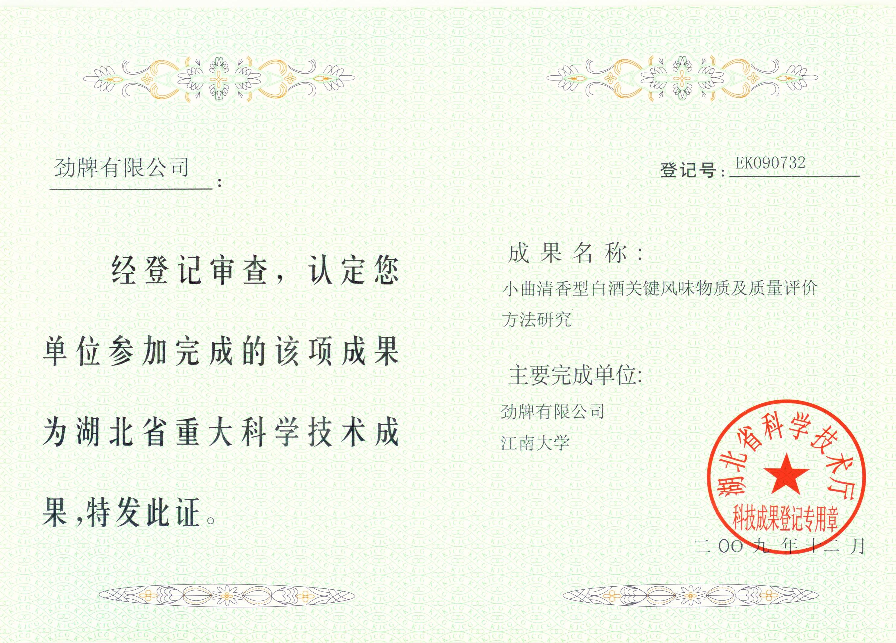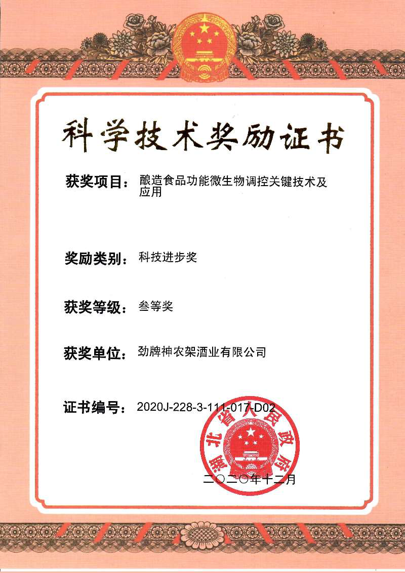 近年來,公司圍繞保健酒、草本白酒和中草藥新產品研發(fā)、產品改進和基礎應用技術,在中藥數字化提取、小曲酒釀造新工藝、中藥指紋圖譜等核心技術方面擁有自主知識產權,通過行業(yè)協會等鑒定機構技術評估22項,其中15項成果鑒定為“國際領先”水平,7項成果鑒定為“國際先進”水平。