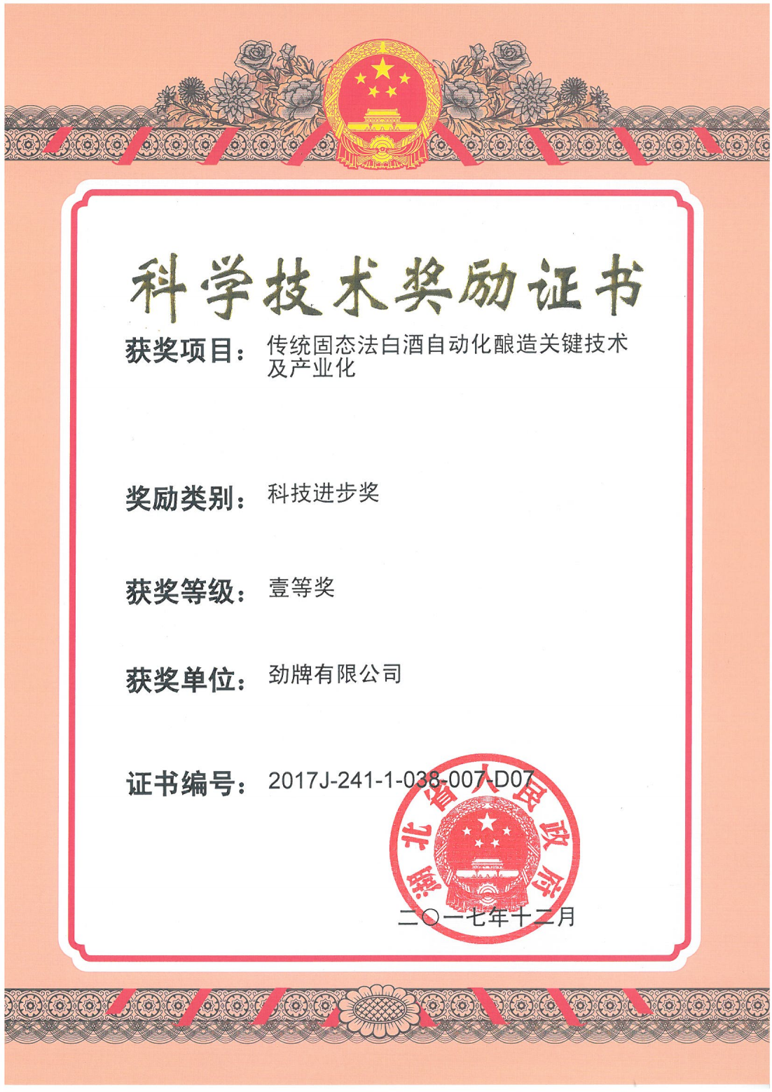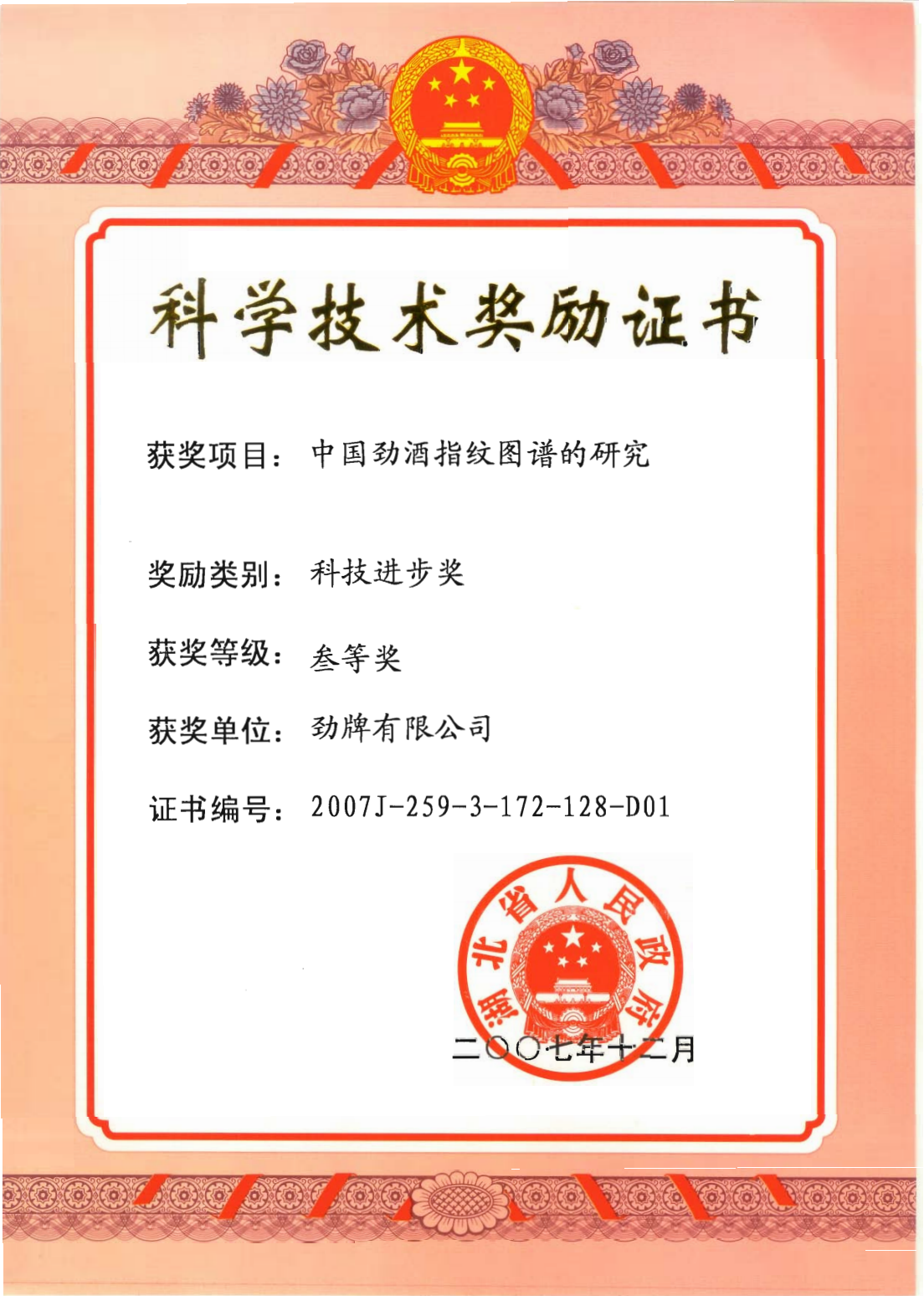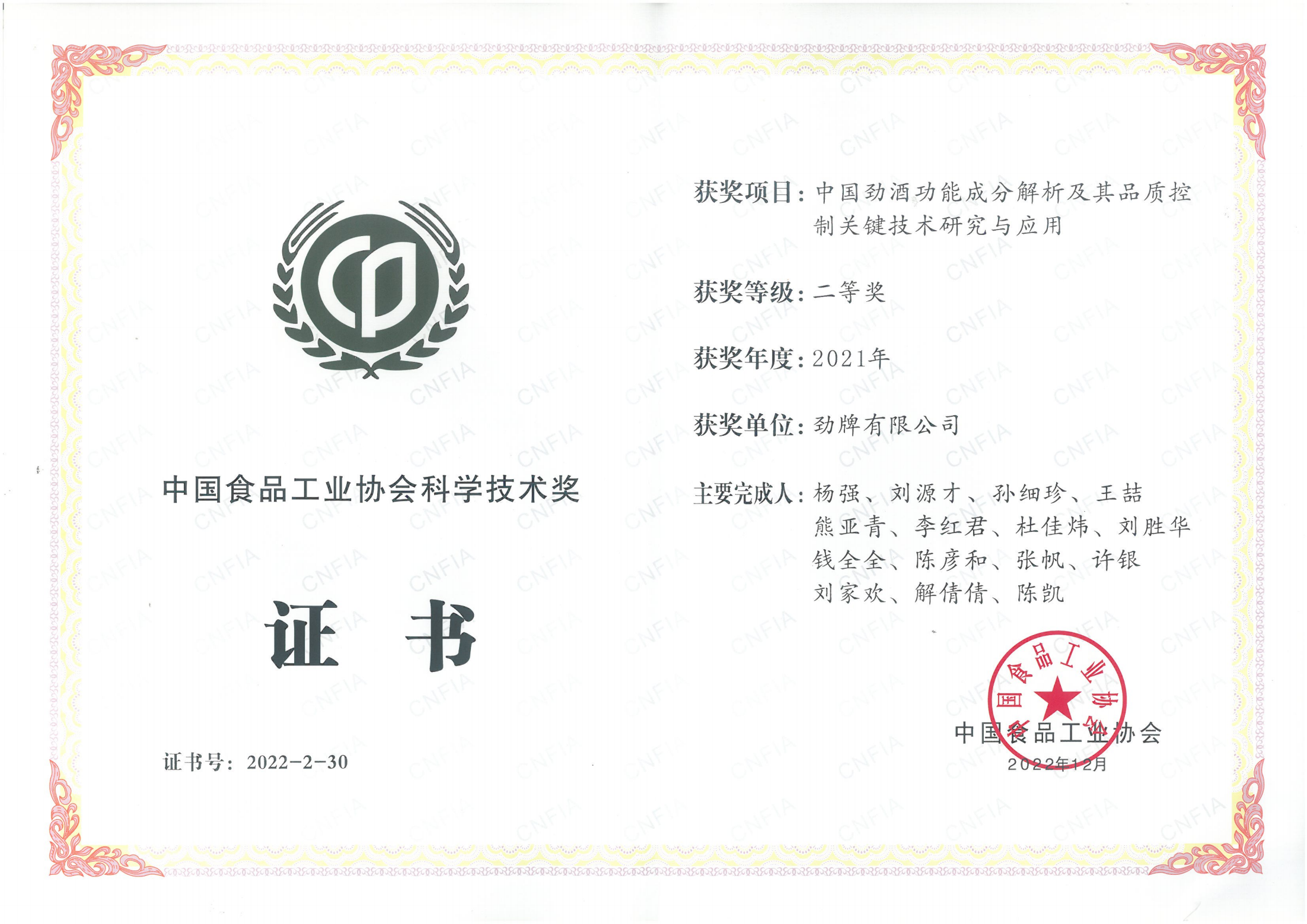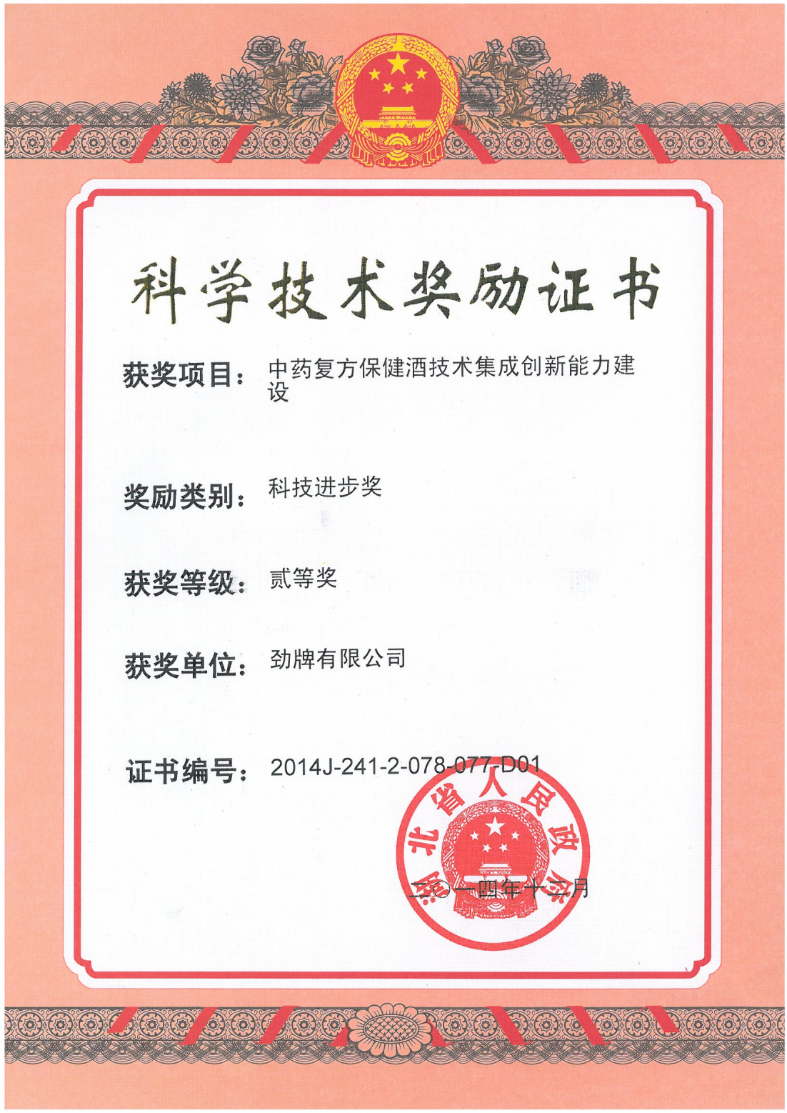 近年來,公司圍繞保健酒、草本白酒和中草藥新產品研發(fā)、產品改進和基礎應用技術,在中藥數字化提取、小曲酒釀造新工藝、中藥指紋圖譜等核心技術方面擁有自主知識產權,通過行業(yè)協會等鑒定機構技術評估22項,其中15項成果鑒定為“國際領先”水平,7項成果鑒定為“國際先進”水平。