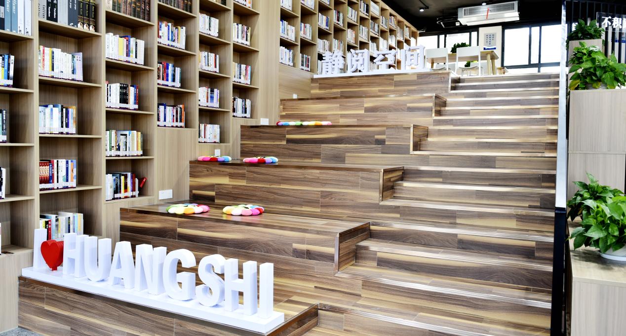 位于鐵山龍衢灣的黃石書房是目前黃石最大的一所城市書房,面積340平方米,內(nèi)設(shè)80余個閱讀席位,配置全套自動化借閱設(shè)備,擁有圖書7934冊,毗鄰小區(qū)與小學,為當?shù)鼐用竦臉I(yè)余文化生活注入了全新的生命力。