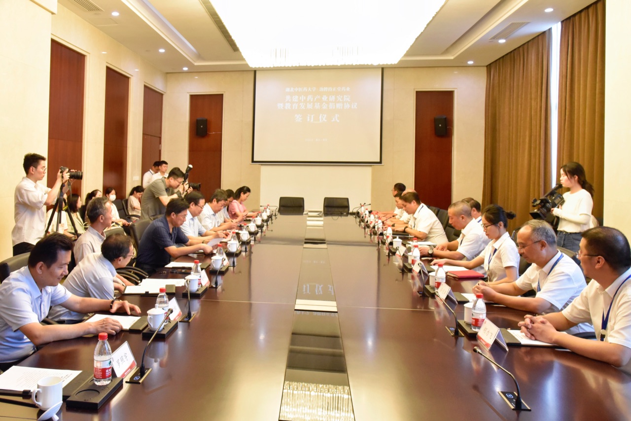 持正堂藥業(yè)董事長(zhǎng)、總經(jīng)理李清安主持簽約儀式,并作為企業(yè)代表與湖北中醫(yī)藥大學(xué)副校長(zhǎng)、教育發(fā)展基金會(huì)副理事長(zhǎng)黃必勝簽訂捐贈(zèng)協(xié)議和“共建中藥產(chǎn)業(yè)研究院”協(xié)議。